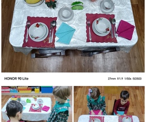 Ребята из группы "Незабудка" учились сервировать стол. Дети бережно, аккуратно и с удовольствием расставляли предметы и столовые приборы. В глазах горели искорки счастья, тепла.