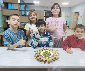 В этот раз познакомились с канапе (на шпажке). Канапе или маленькая закуска на шпажках имеет огромную популярность в современном мире. Без такого деликатеса не обходится ни один праздничный стол. Блюдо радует глаз и возбуждает аппетит перед основной трапезой.
