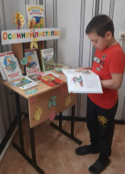 оформлена книжная выставка "Осенний листопад". Ребята познакомились с произведениями В. Бианки, Г. Скребицкого, Б. Житкова, отвечали на вопросы, отгадывали загадки об осенних явлениях, вспомнили приметы осени. В конце мероприятия, дети из осенних листьев, сделали аппликацию.